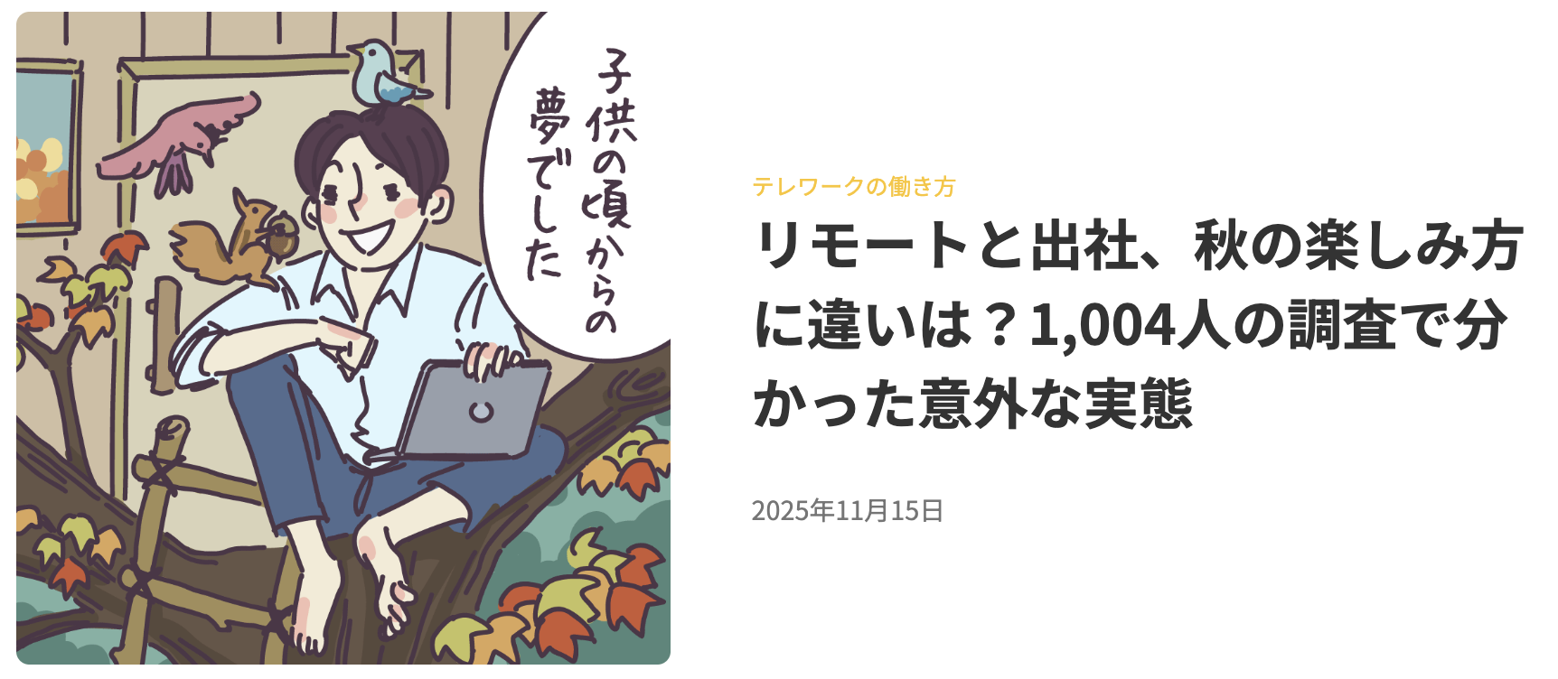 リモートと出社、秋の楽しみ方に違いは?リモートワーク経験者のビジネスパーソン1,004人の調査で分かった意外な実態とは?
