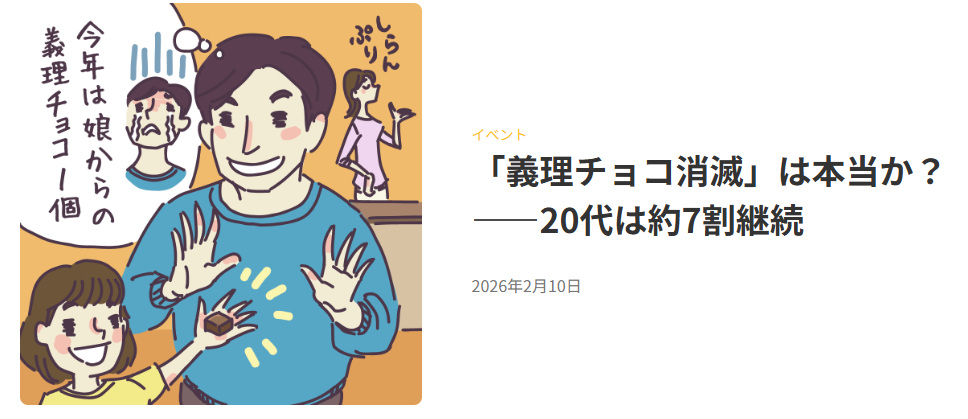 「義理チョコ消滅」を検証——20代の約7割が継続、5人に1人は「増えた」