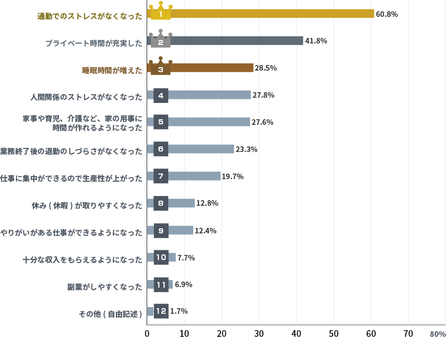 通勤時間が減り、自由時間や睡眠時間が増えるというメリットは、今もリモートワークの大きな魅力です。