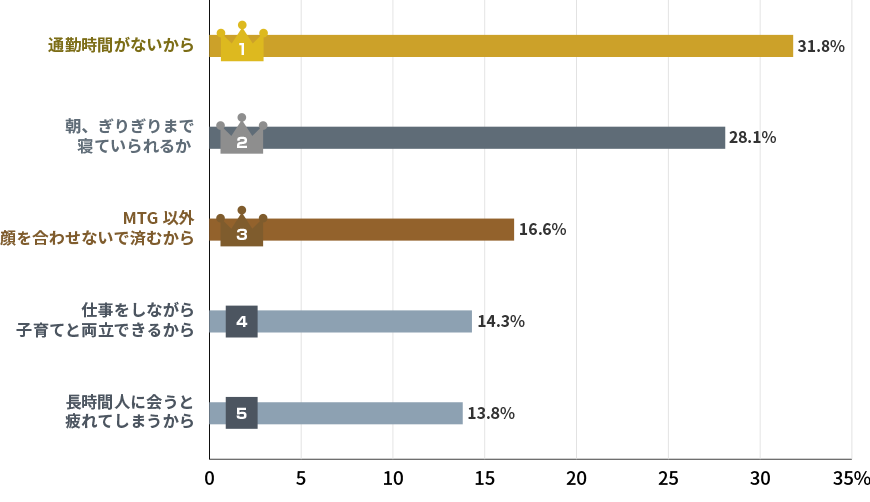 まず全体に共通して最も大きな理由となったのは「通勤時間がないから」でした。